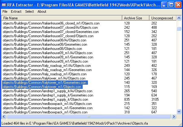 Now we need to grab the models Object files. You'll find these in mods Objects.rfa file. Some mods Objects.rfa directory structures are different, so you may have to look harder for what you are looking for, in this case, the object files for italytower_m1. You'll see the files you'll have to extract for this model in the screenshot below: