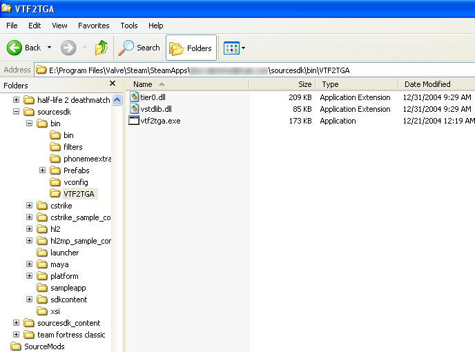 Go back to the VTF2TGA directory you created in the bin directory and paste the three files. Your directory should now look like the image below: